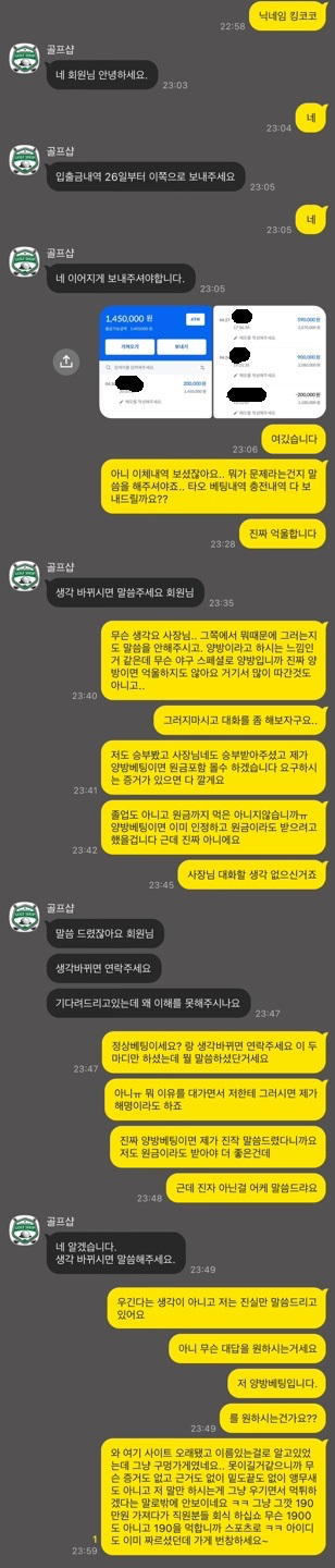 '한마디만 말할게요 정상베팅이세요?' 그렇다고 하니까 '생각바뀌면 연락주세요'